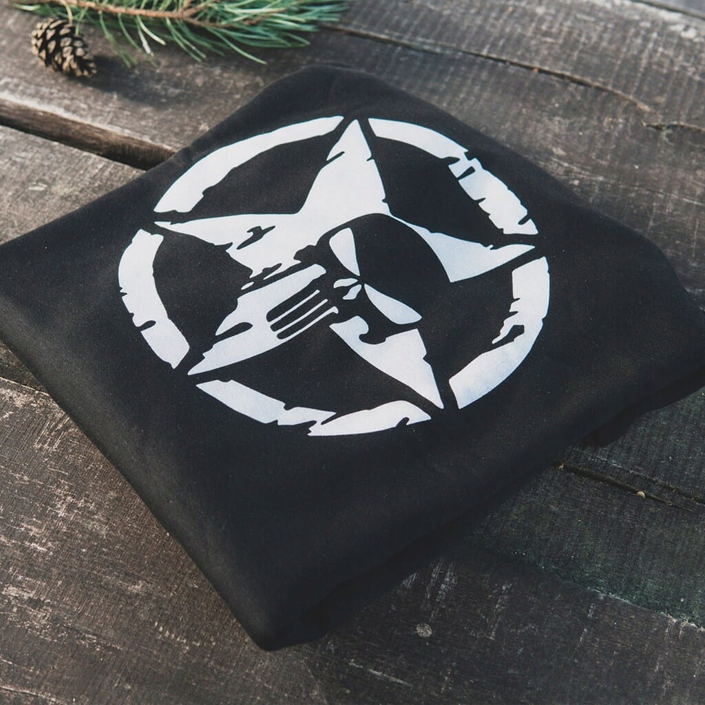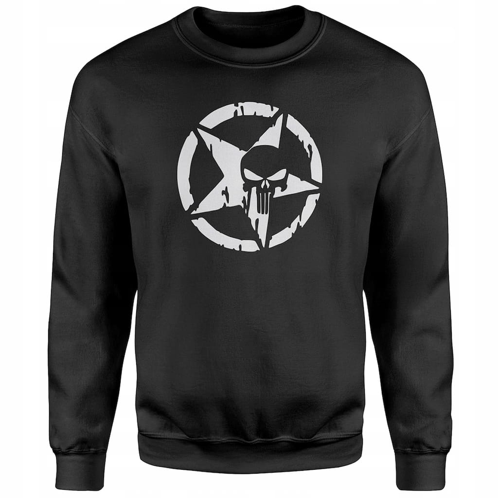 Charakterystycznym elementem bluzy jest nadruk na wysokości klatki piersiowej, przedstawiający logo Punishera wpisane w gwiazdę U.S. Army. Nadruk ten cechuje się wysoką trwałością, nie blaknie ani nie traci kolorów nawet po wielu praniach i długotrwałym użytkowaniu.