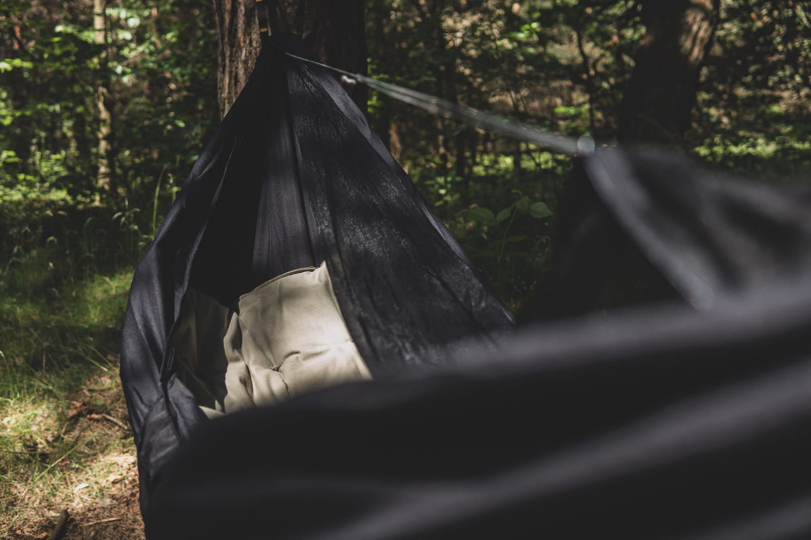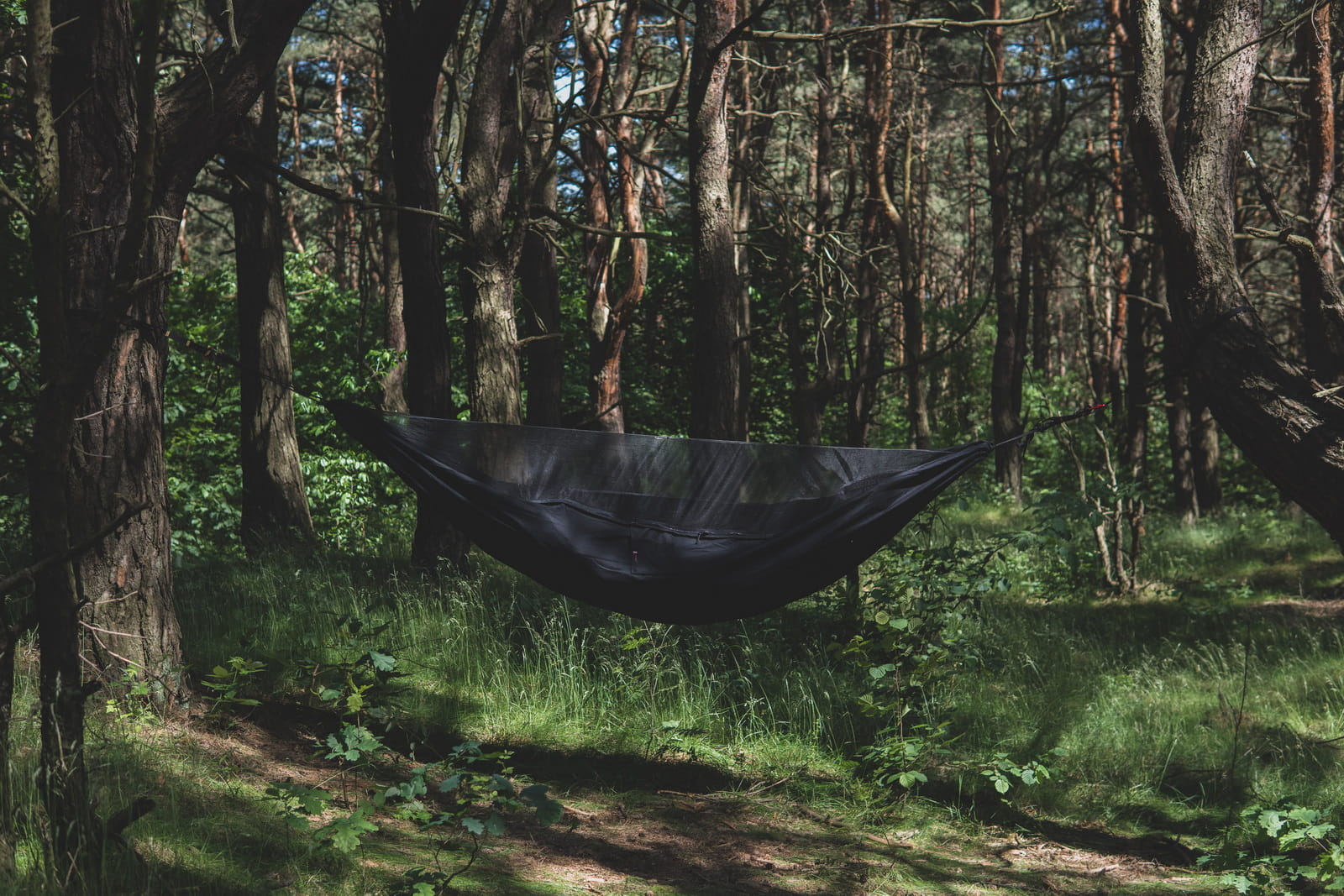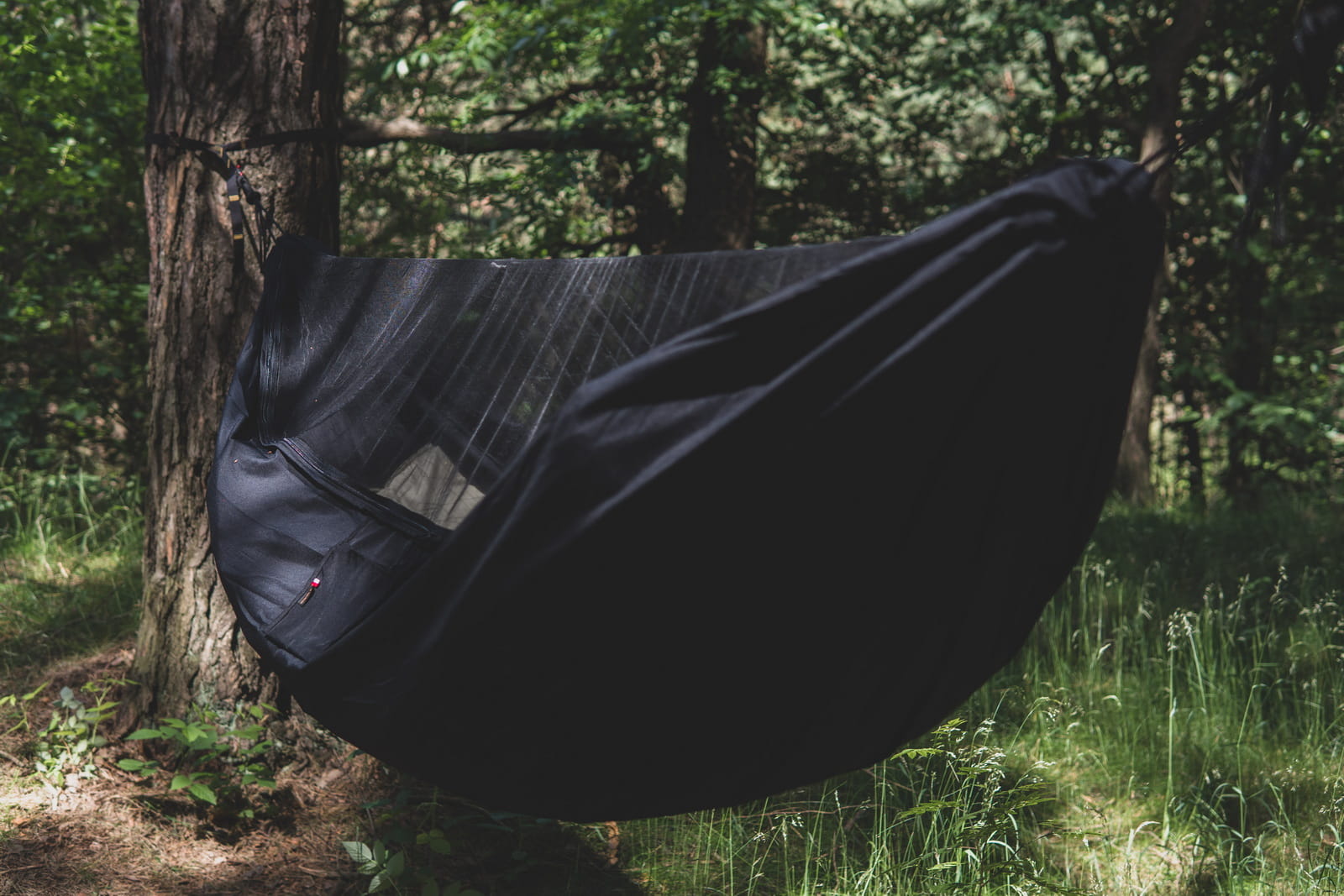 Moskitiera zintegrowana z hamakiem została wykonana z materiału o gęstości ściegu poniżej 1mm, co skutecznie eliminuje możliwość dostania się insektów do wnętrza. Dzięki temu możesz cieszyć się spokojnym snem bez obawy przed ukąszeniami owadów.