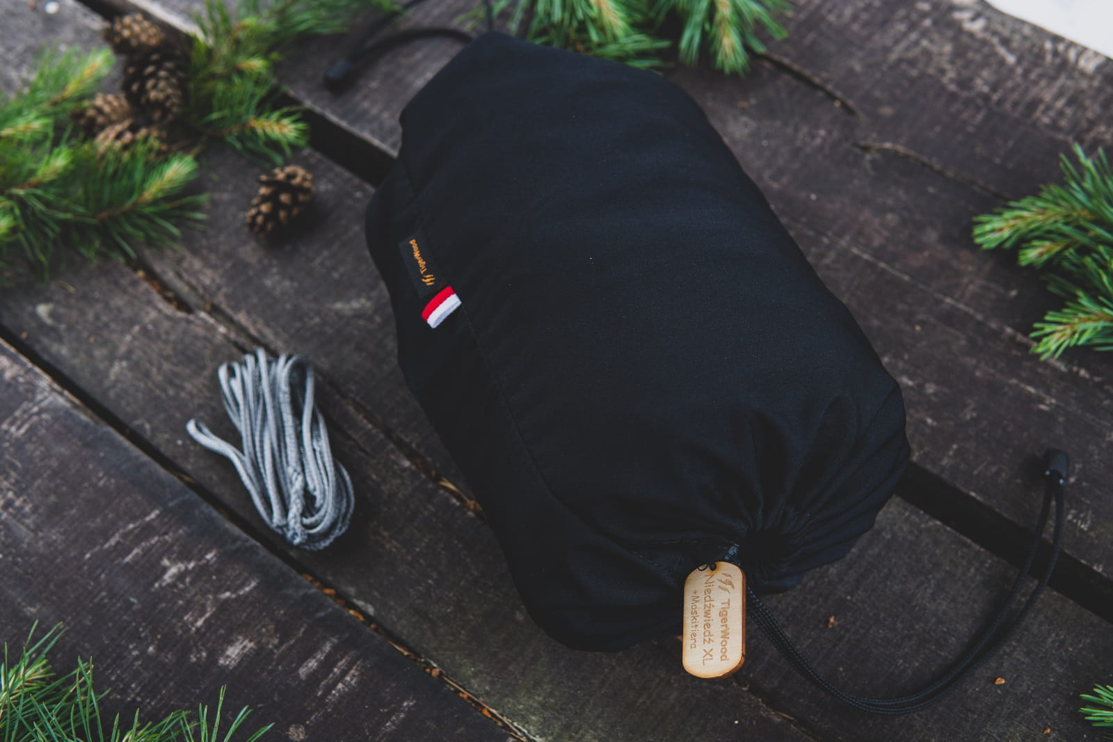 Hamak Obozowy TigerWood Niedźwiedź Czarny Long 350 cm z Moskitierą Single Zip